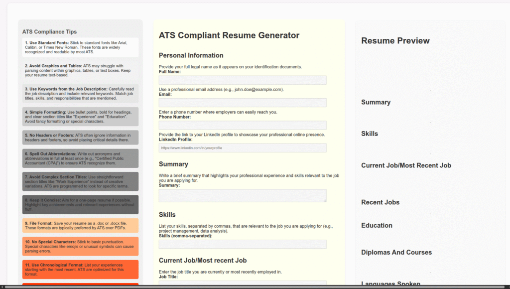 Create a resume using the standard cutting edge resume format that will pass the first automated step in any Applicant Tracking System.